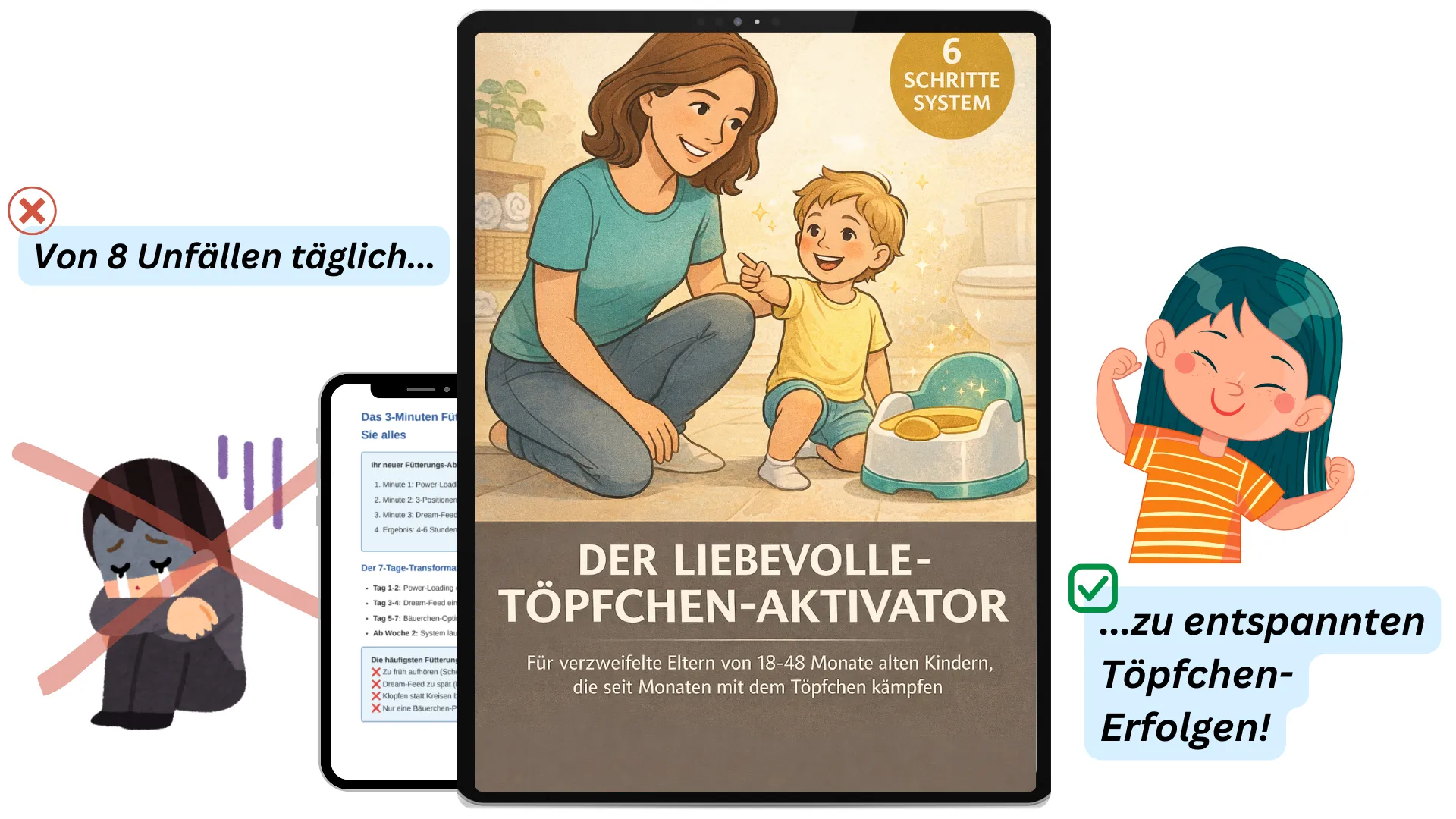 Schon heute Abend liest du Schritt 1 und machst den 2-Minuten-Verstopfungs-Check. Morgen siehst du dein Kind mit neuen Augen. Diese Woche beginnst du mit dem neuen Ansatz, ohne Druck, ohne Zwang, ohne tägliche Verzweiflung. "Du atmest endlich wieder durch."